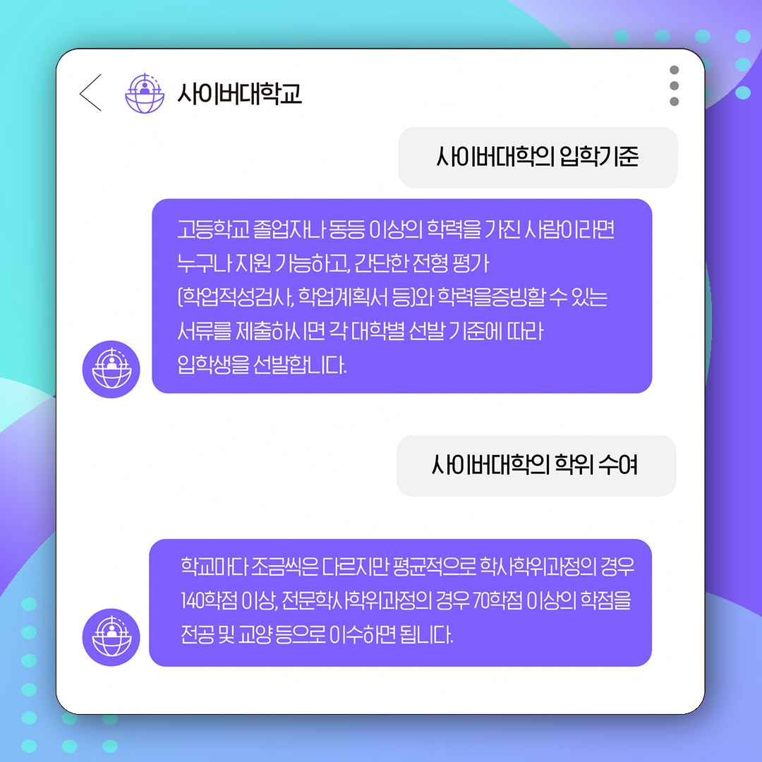 사이버대학교 클릭 시 입학 안내 페이지로 이동합니다.